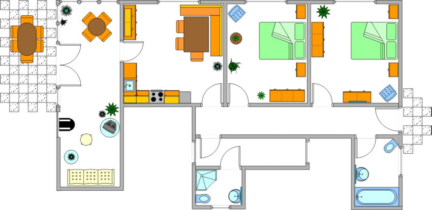 Schlafzimmer, ein Bad mit WC, eine separate Dusche mit WC, eine